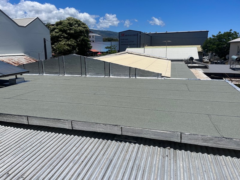 À La Réunion, les toitures sont fortement exposées au rayonnement solaire, ce qui provoque une surchauffe des surfaces, des tensions thermiques importantes et une mise à rude épreuve des matériaux.